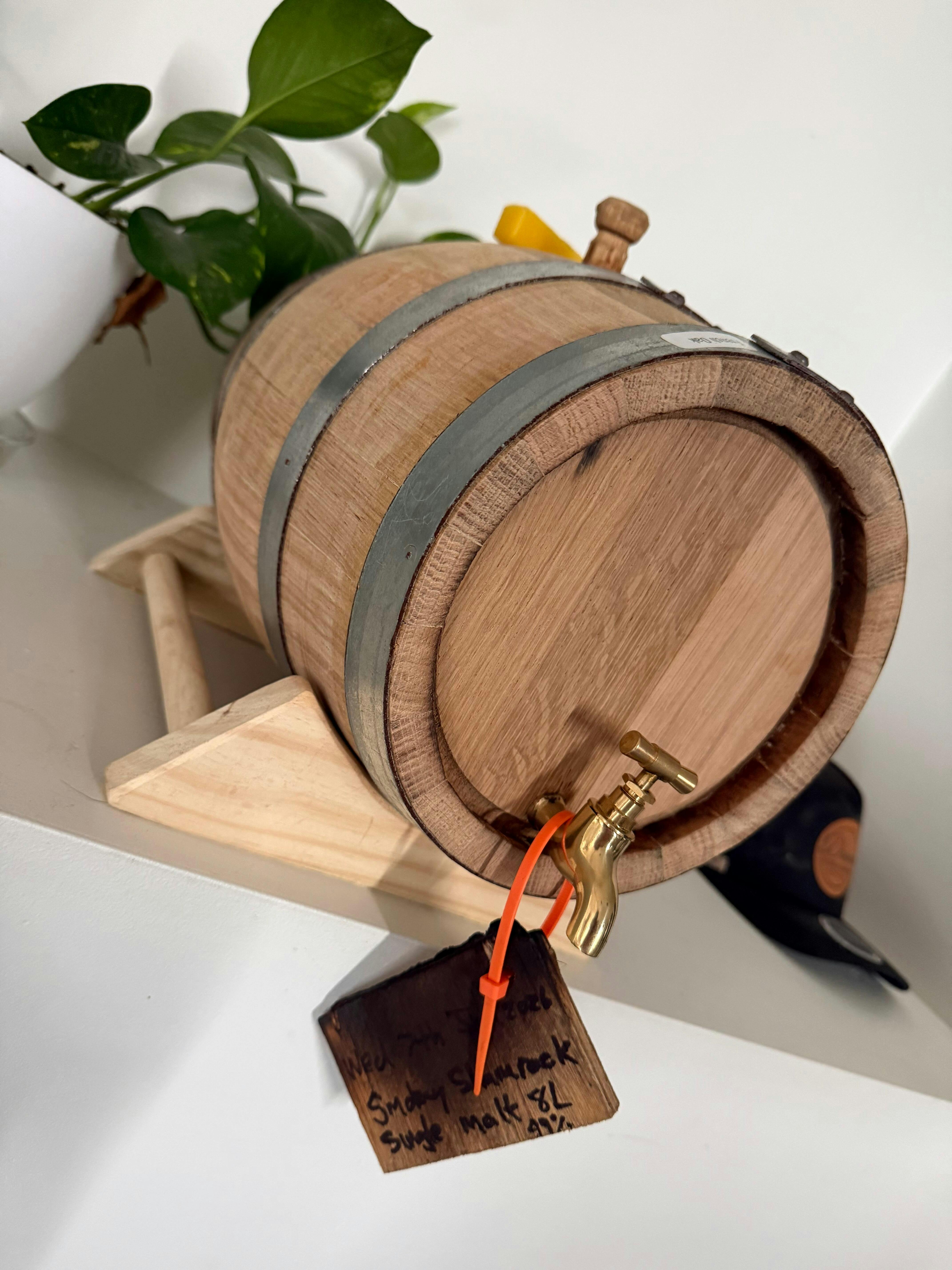 - 5l french oak recoopered barrel with a medium char (ex red wine)